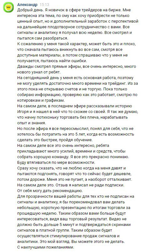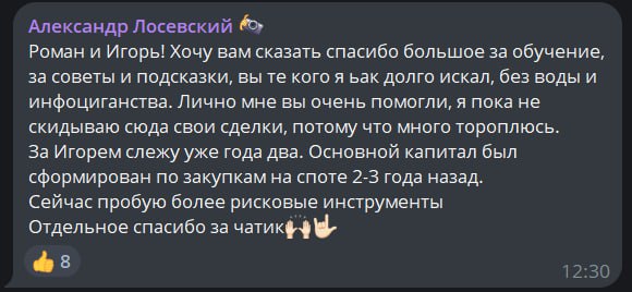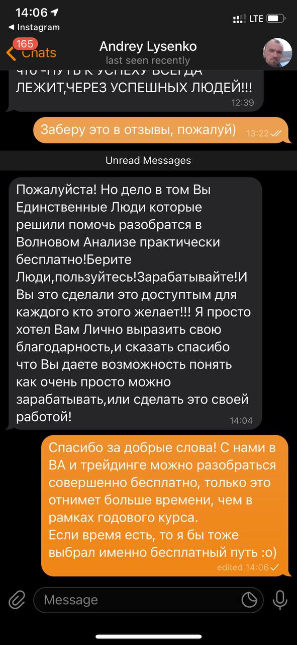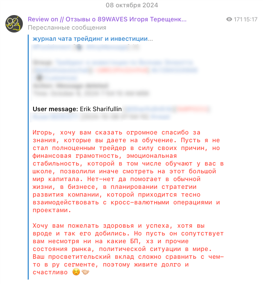 Игорь Терещенков лично отвечает на отзывы и контролирует качество программы обучения.